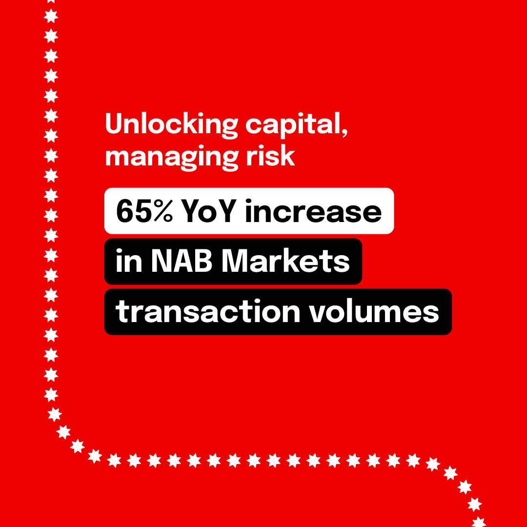 Last month saw a 65% year-on-year increase in NAB Markets transaction volumes, driven by strategic support that helped business customers unlock working capital and manage risk amid a shifting global landscape.