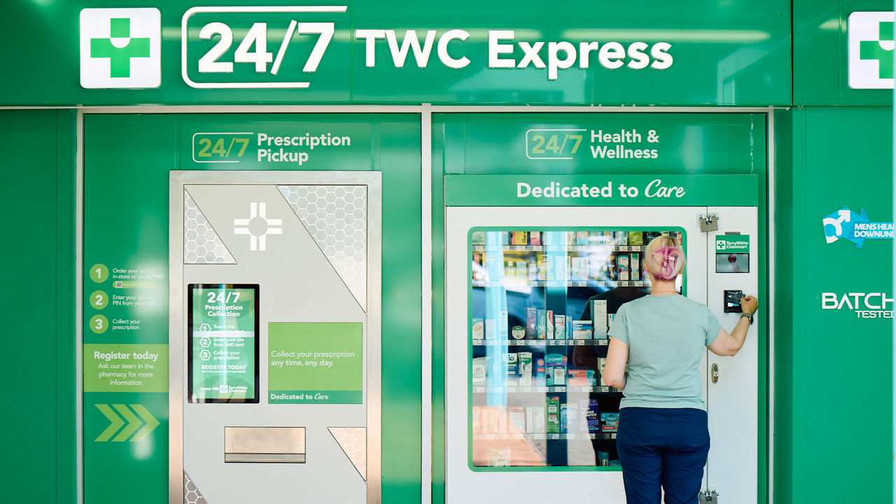 One machine provides a prescription pick-up service while the other sells items that are commonly needed after hours, or which some customers would prefer to purchase in private – from over-the counter medications for children to pregnancy tests.
